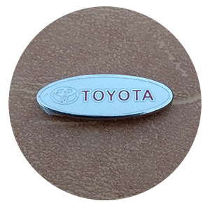 При изготовлении значков по данной технологии печать изображения выполняется по металлу (алюминий, нержавеющая сталь, латунь) с последующей заливкой изделия эпоксидной смолой.
