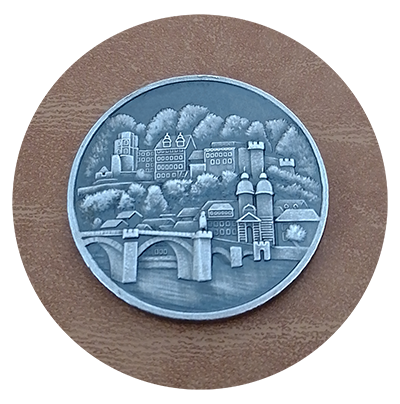 Данная технология позволяет передавать в значке или медали даже самые тонкие линии. Углубления, которые необходимо передать в изделии, вытравливаются кислотой (не штампуются)